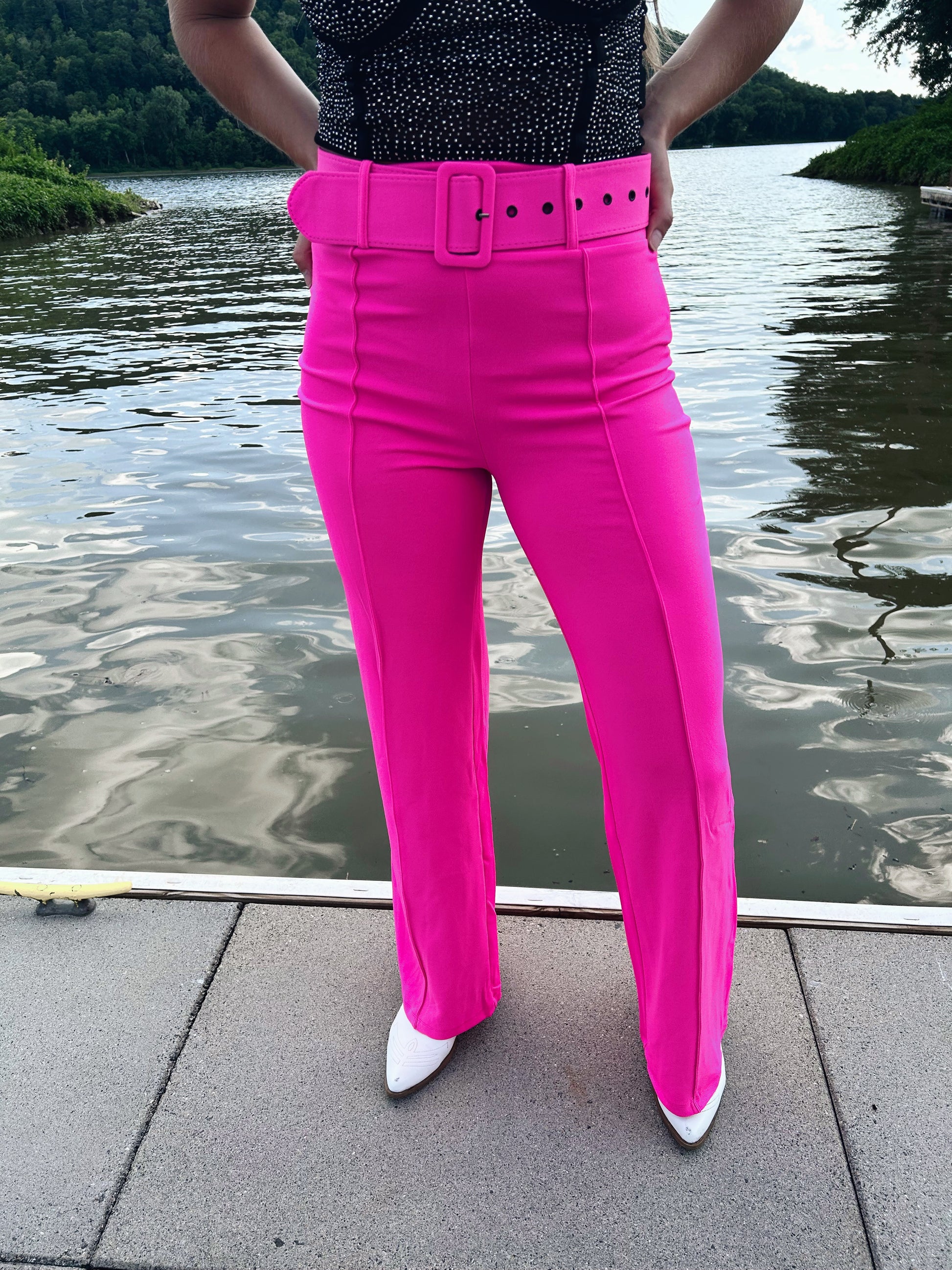 Look lovely in these hot pink Barbie Way Flares. They feature a flattering belted waist for a confident, feminine fit, and are perfect for any occasion. Embrace your style and flaunt your beauty with The Barbie Way Flares.