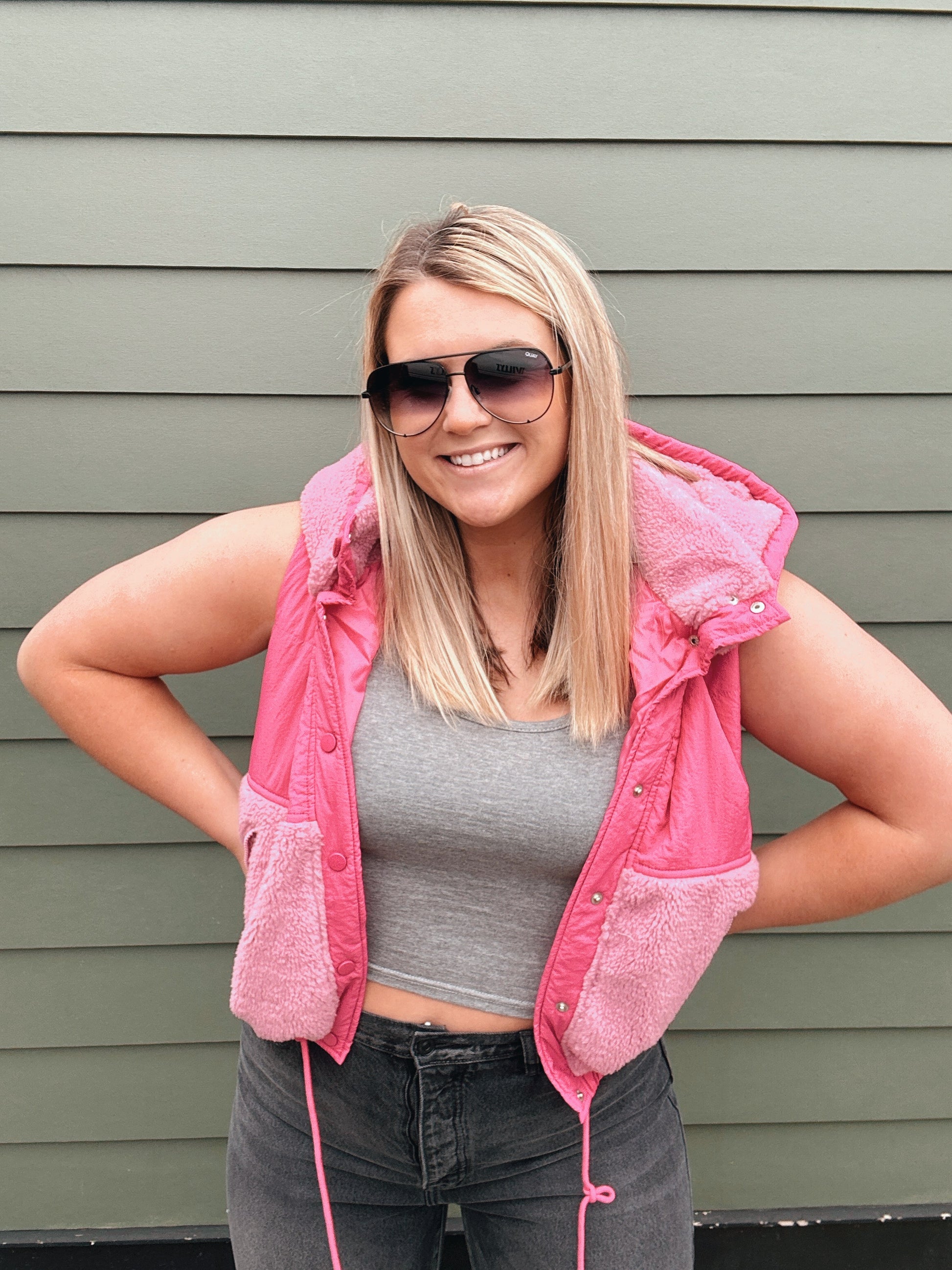 Wrap yourself in style and warmth with The Chanel Vest! This hot pink, fleece hooded vest adds a pop of color to your outfit while keeping you cozy. Did I mention the hood is removable?! It’s like two vests in one! Perfect for chilly days, this vest is a must-have for fashion-forward babes. Elevate your wardrobe with this versatile and trendy piece.