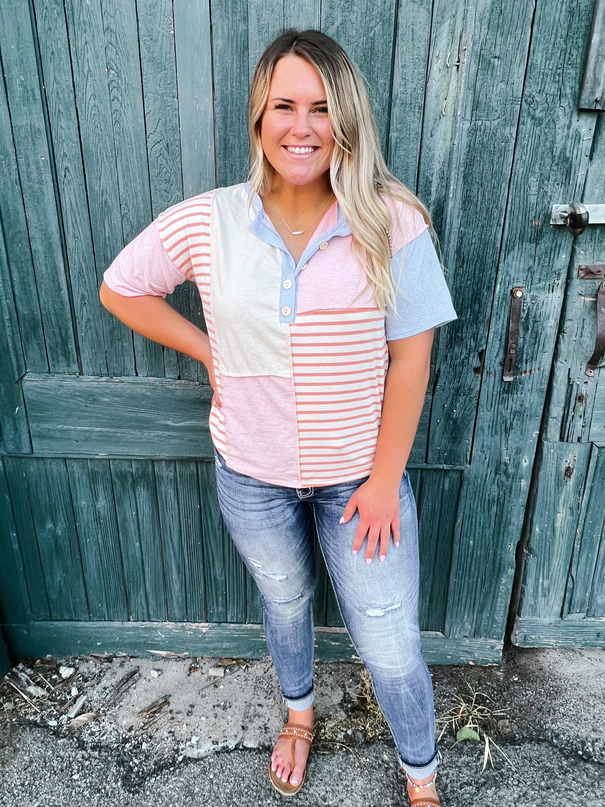The Emily Colorblock is the cutest and softest top for any occasion! Pair this with your favorite jeans or shorts for the best look!