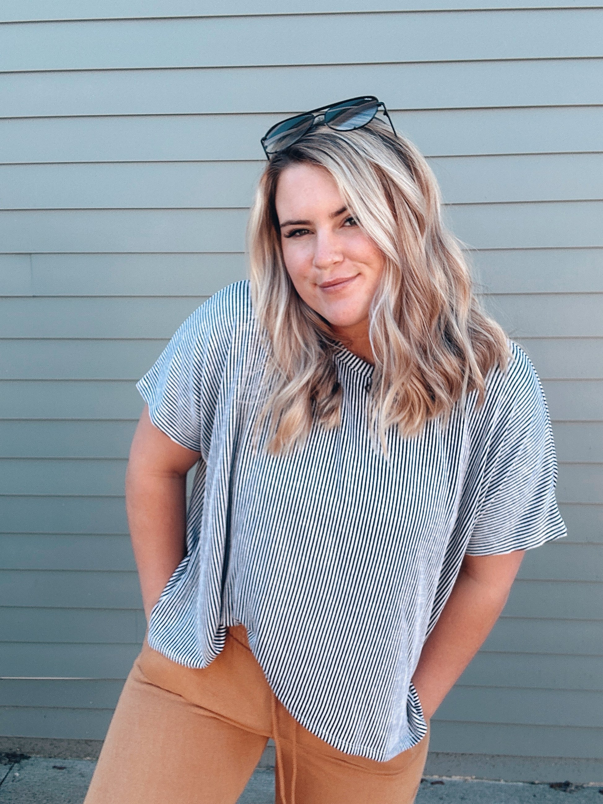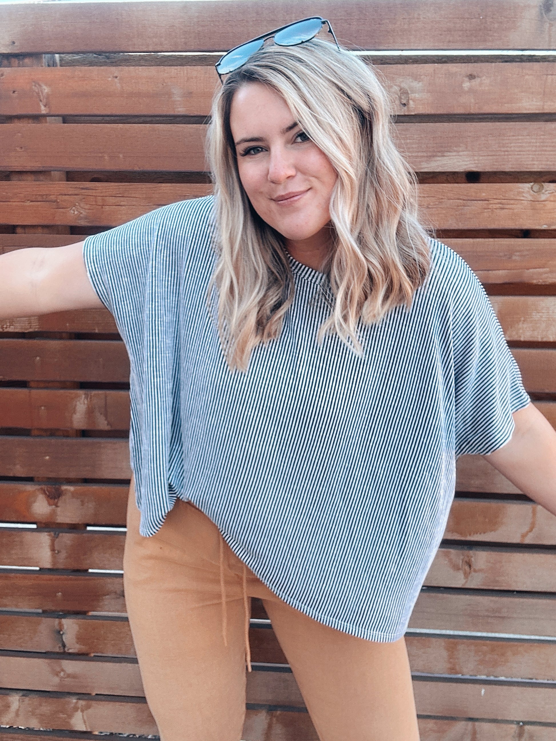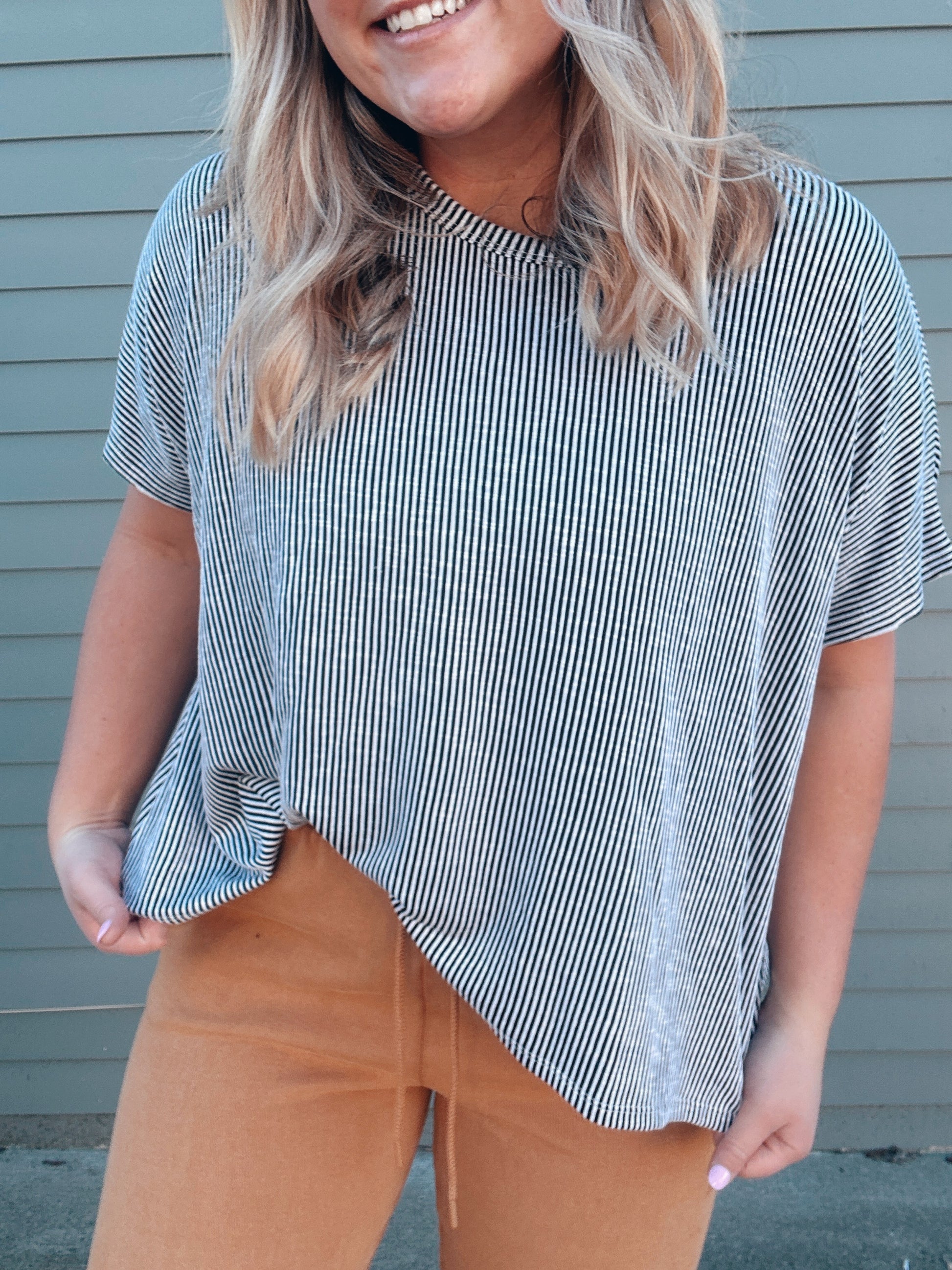 Elevate your wardrobe with The Fool Me Once Top! This oversized, black ribbed top with striped short sleeves is the perfect blend of comfort and style. Effortlessly chic, it's a versatile piece that can be dressed up or down for any occasion. Get ready to make a statement and turn heads with this must-have top!