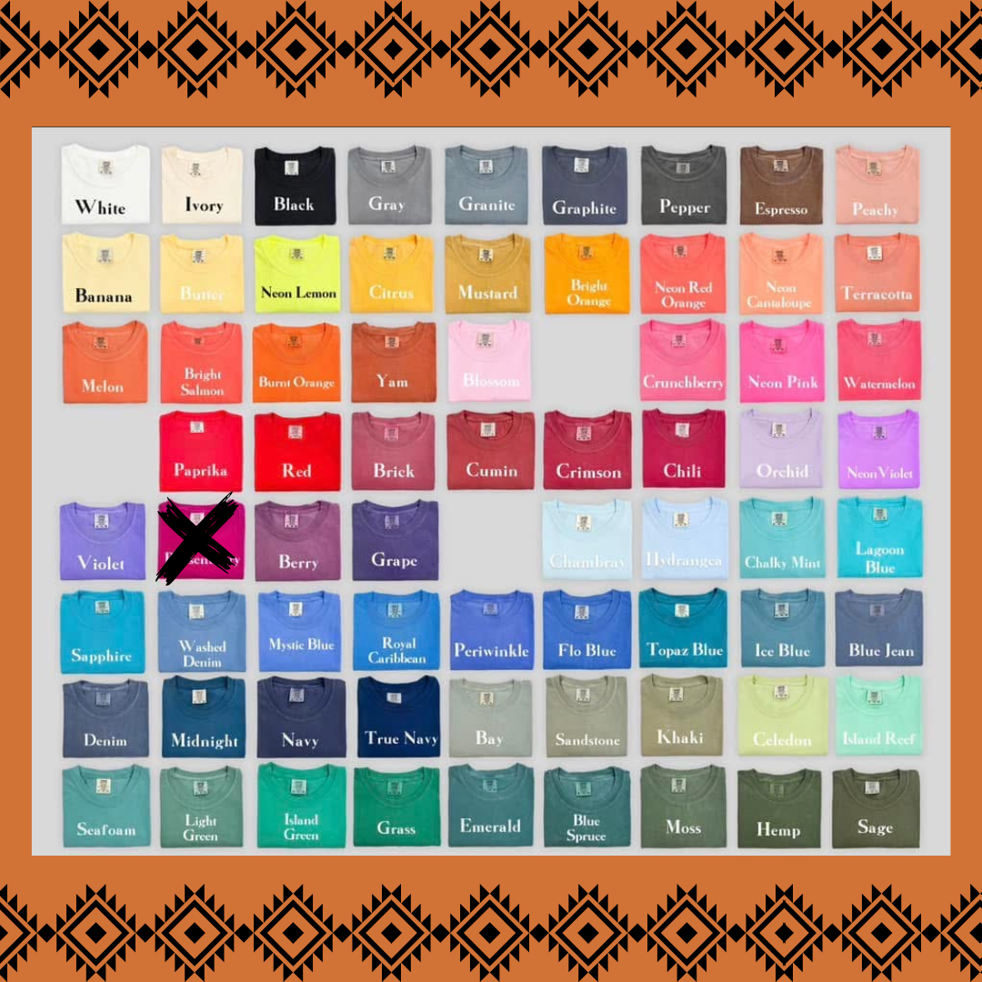 If you'd like a different color tee than what design is pictured on, you can choose from color chart and leave a note at checkout. If not you will receive color pictured.