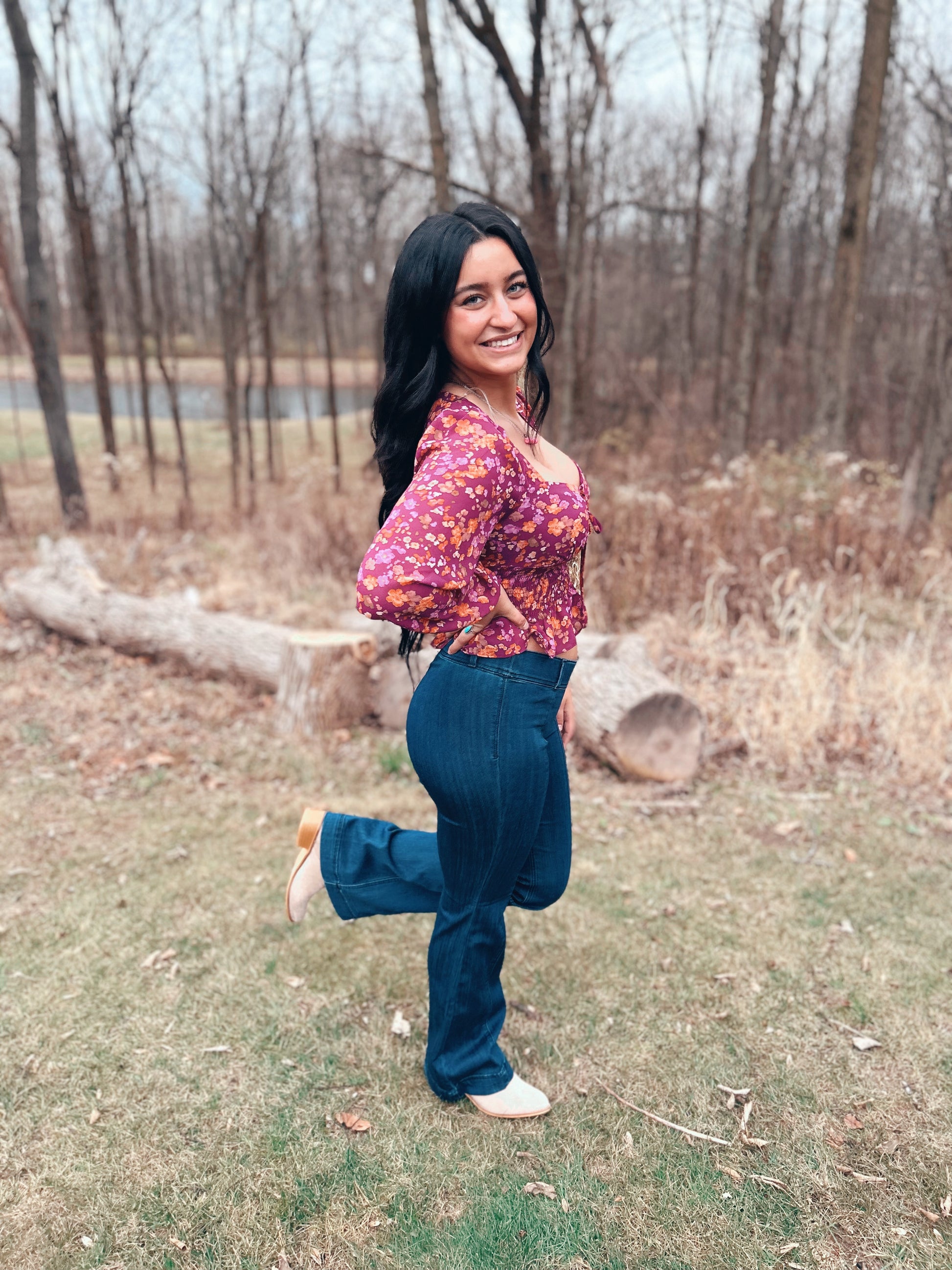 The Hailey Flare Jeans are the cutest dark wash flare jeans perfect for any occasion! Pair this with your favorite top for the cutest look!