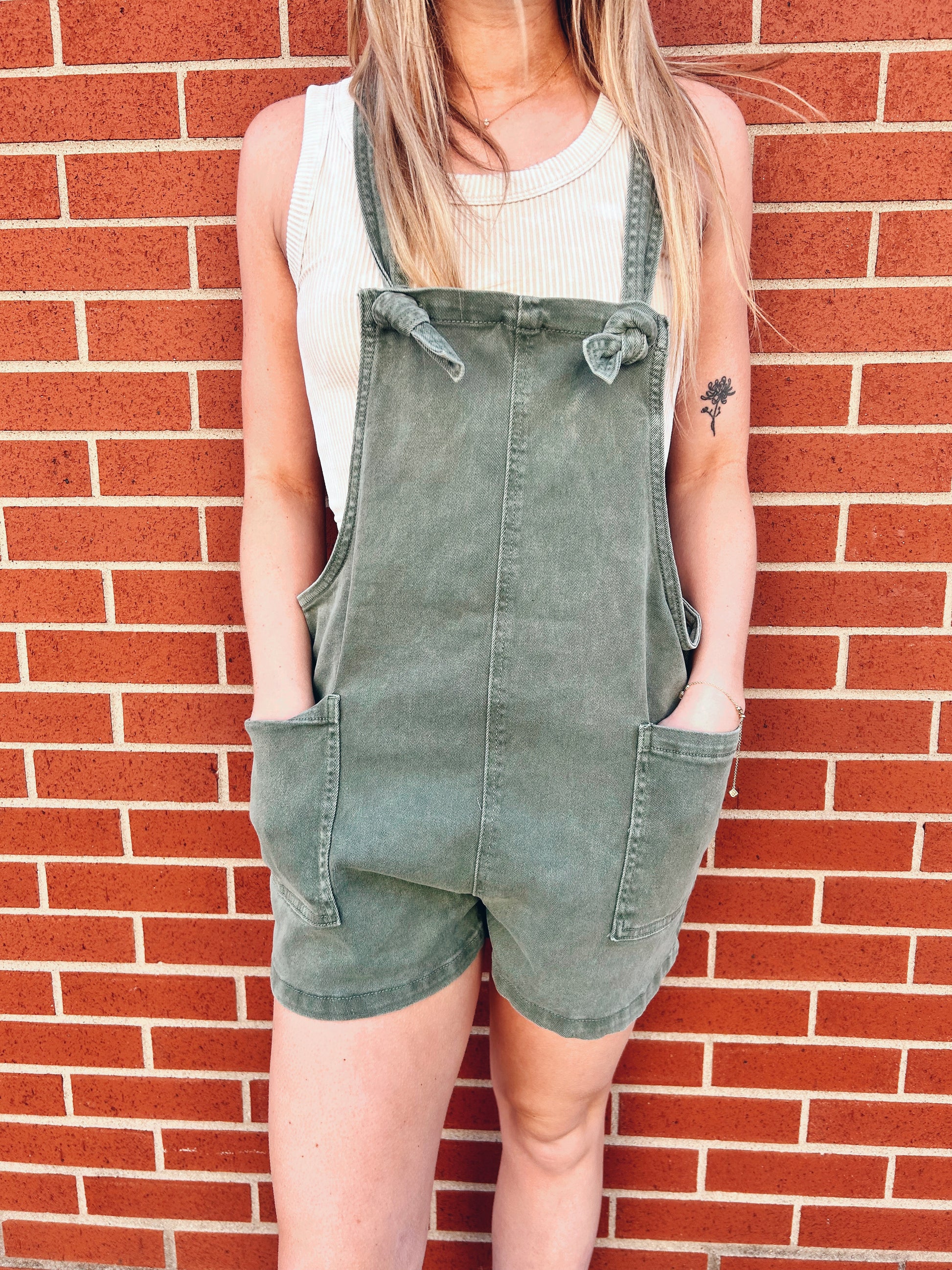 Upgrade your summer wardrobe with The Hansel Romper. The olive vintage wash gives it a unique style, while the knot strap adds a touch of elegance. Stay comfortable and chic all day long in this must-have romper. Match this with our Gretel Crop for the cutest pairing.