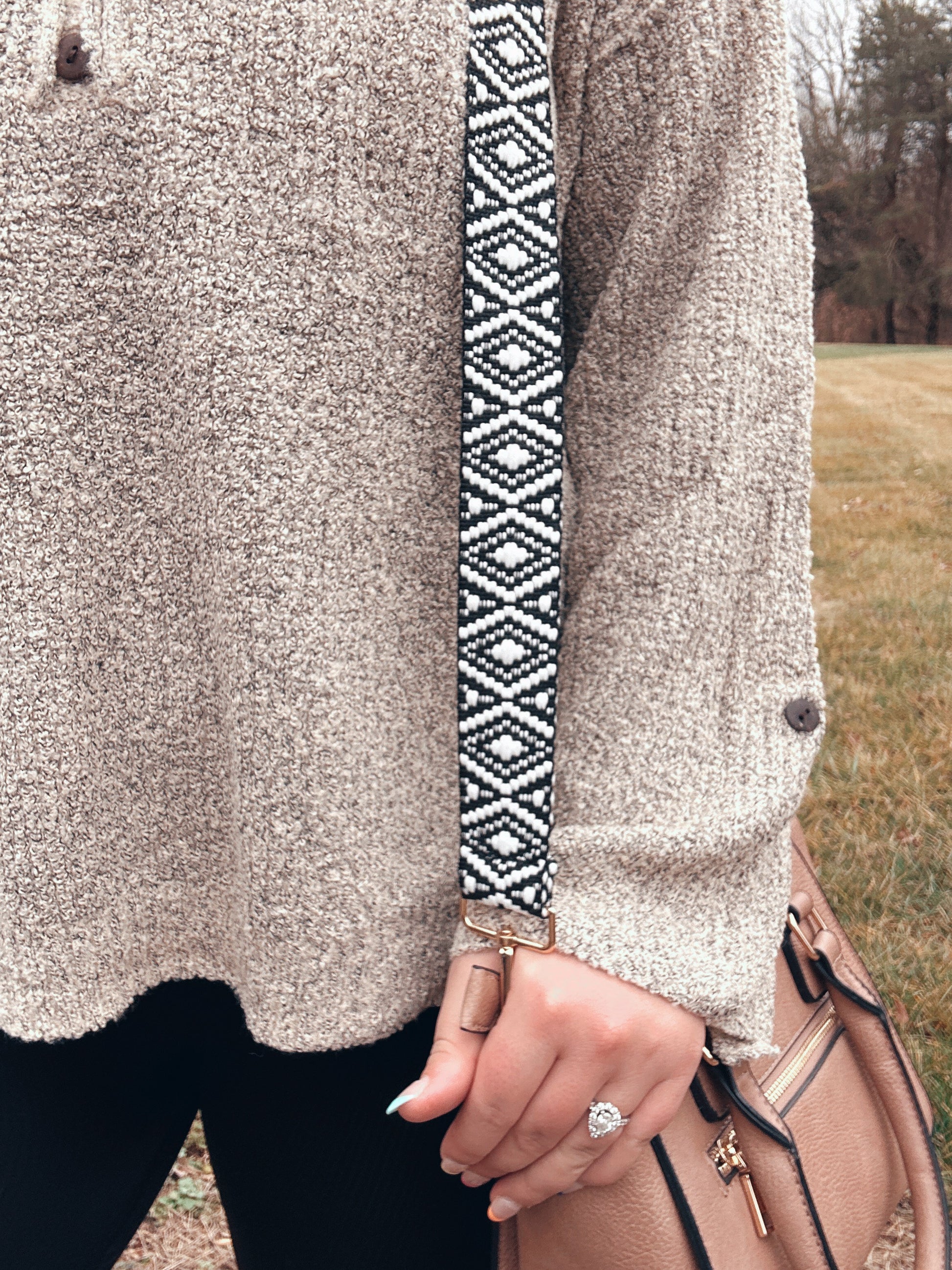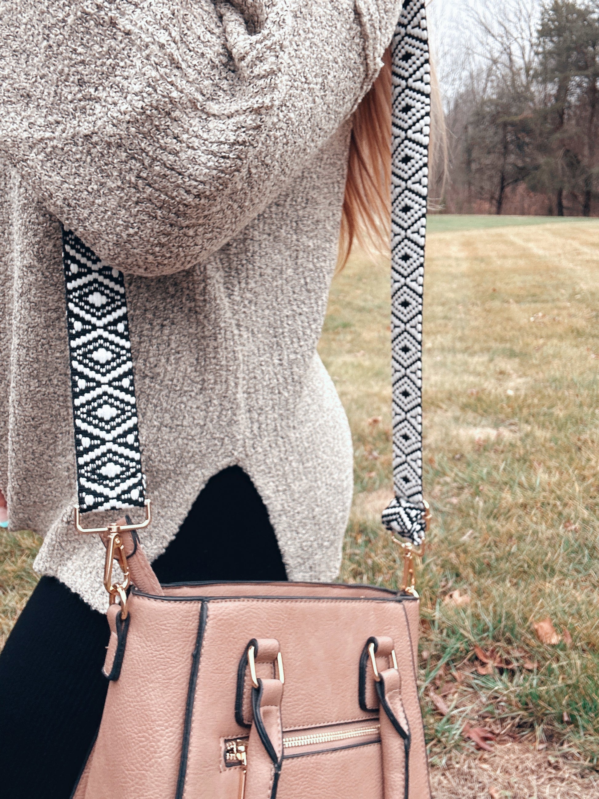The Kyra Bag Strap is the cutest adjustable geometric patterned fabric bag strap that can add a pop of color to any bag and outfit!